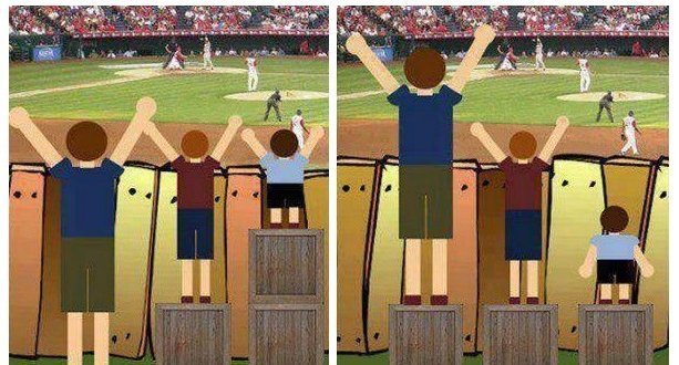 Örnek vermek gerekirse bir ailede iki çocuk olduğunu düşünelim ve birinin engelinin olduğunu varsayalım. Eşitlik adına iki çocuğu da aynı okula gönderemeyiz çünkü engelli çocuğun özel bir eğitim alması gerekir. Bu noktada “eşit” davranmak iki çocuğa da haksızlık olur. Adil olmak ve bireylerin istek ve ihtiyaçlarına göre davranmak doğru olandır.