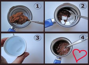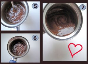 Kahvenin yapılışı yukarıdaki resimde de görüldüğü üzere oldukça kolay. Su, kahve ve şekeri bir cezvenin içinde iyice karıştırdıktan sonra kaynayana kadar bekliyoruz. Kahve hazır.