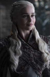 Bu broş bir yerden tanıdık geliyordu ama anlayamamıştım. Daha sonrasında bu broşu odama götürdüm ve incelemeye başladım. Bir anda o broştan kırmızı bir ateş çıkmaya başladı. Uyandığımda kendimi bir yatakta buldum ve kıyafetlerim çok farklıydı ama bu yerde farklıydı çünkü bu yer sallanıyordu yüksek ihtimalle bir gemideydim. Kalkıp güverteye çıktığımda hiç görmeyi beklemediğim birini gördüm Daenerys Tagrayen’ı gördüm. Gümüş rengi saçları ve mor gözleriyle bana bakarak