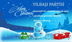 Malum kış olduğu için her yer karla kaplı. Şansıma bahçesinde birkaç tane çam ağacı var. Onları renkli ışıklarla ışıklandırdım ve yılbaşı süsleriyle süsledim. Bu süslerin arasında minik camdan melek şeklinde ışıklı süsler de var. Bu meleklerin kanatlarında konuklarımın isimleri yazıyor. Işıkları yandıkça isimler görünüyor. Ağaçların altına hediye paketlerini bırakacağım. Bahçede çam ağaçlarının yanında içinde barbeküsü olan büyük bir çardak var. Çardağın çatısına ışıklı harfler ile “Zeynep ve Sevgili Dostları! 2018 Sizin Yılınız olsun.” yazdıracağım. Barbekünün olduğu yere büyük bir ateş yaktıracağım. Her yer ışıl ışıl olmalı, dostlarım kendilerini bir masal dünyasına girmiş gibi hissetsin diye konuklarımı bahçede benimle birlikte bu tablo karşılasın istiyorum.